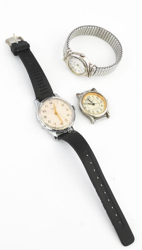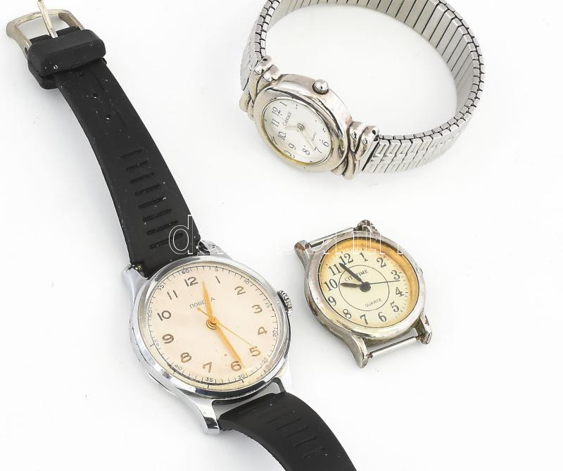 Leírás: 3 db óra, mechanikus Pobeda, stb Működnek