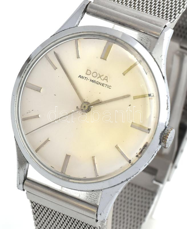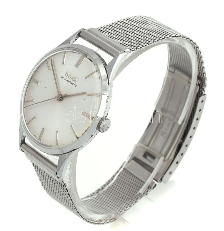 Leírás: Doxa Anti-Magnetic férfi karóra, fém szíjjal, működik, d: 34 mm