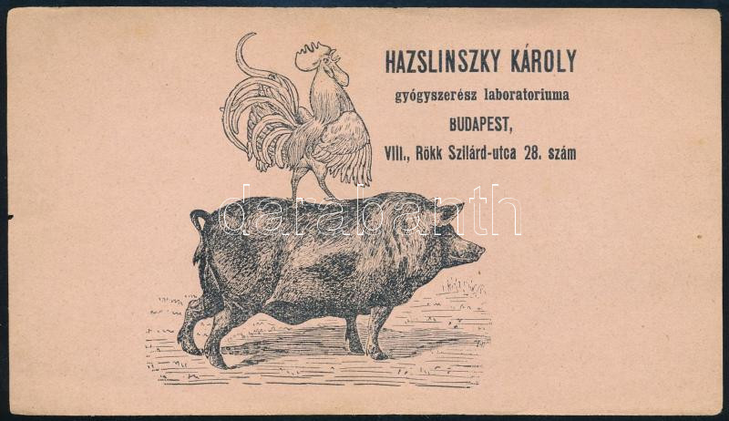 "Hazslinszky Károly gyógyszerész laboratóriuma, Budapest", számolócédu... https://www.darabanth.com/hu/480-Gyorsarveres/480.0/Mutargy-papirregiseg-egyeb/Reklam~1500007/Hazslinszky-Karoly-gyogyszeresz-laboratoriuma-Budapest-szamolocedula-8x15-cm~II3280714