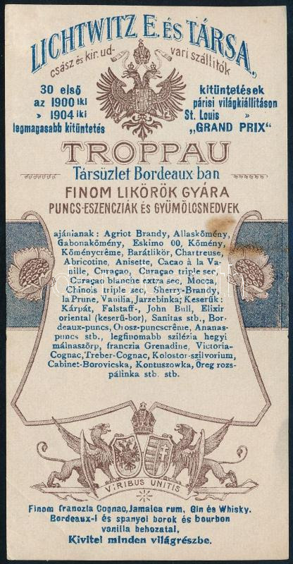 cca 1905 Lichtwitz E. és Társa finom likőrök gyára számolócédula https://www.darabanth.com/hu/480-Gyorsarveres/480.0/Mutargy-papirregiseg-egyeb/Reklam~1500007/cca-1905-Lichtwitz-E-es-Tarsa-finom-likorok-gyara-szamolocedula~II3280720