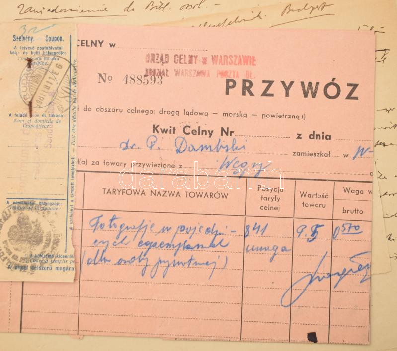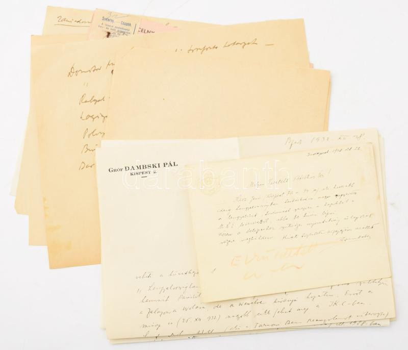 cca 1928-1938 Gróf Dambski (Domszky) Pál lengyel származású nemes, történész, a magyar-lengyel kapcsolatok kiemelkedő kutatójának és ápolójának iratai: saját kezű levelei, vázlatok, lengyel nyelvű levelek, stb.; összesen 13 db