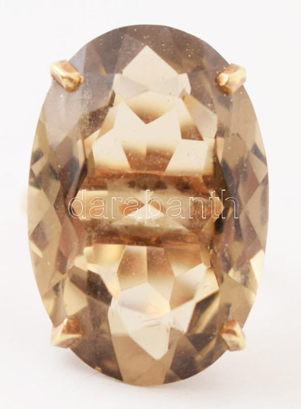 Leírás: 14K arany gyűrű, nagy méretű csiszolt füstkvarccal. Jelzett br 12,6 g kő : 29 mm
