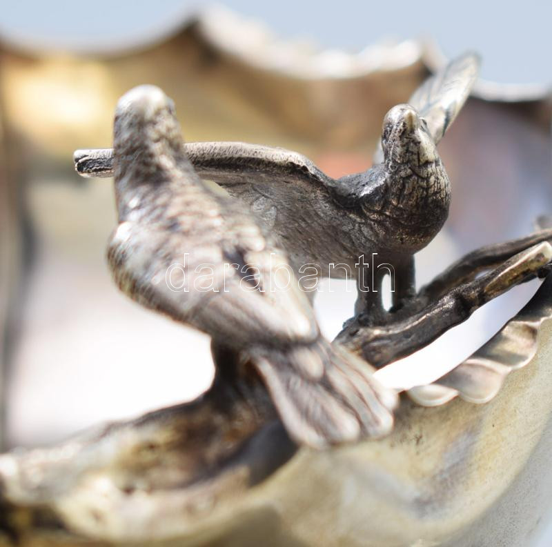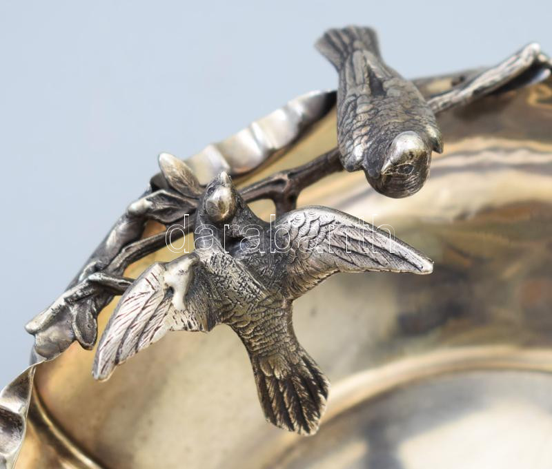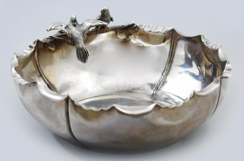 Leírás: Ezüst(Ag) madaras kínálótál, jelzett, karcolásokkal, d: 17,5 cm, nettó: 231,5 g