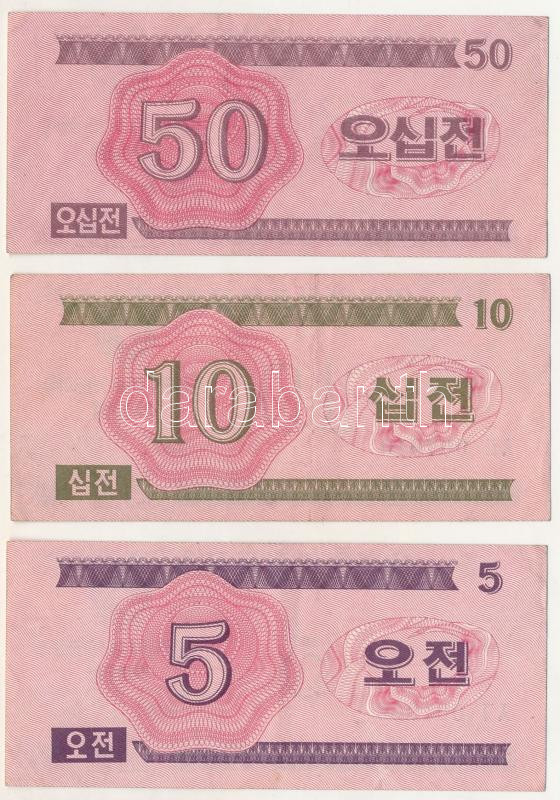 Észak-Korea 1988. 5ch "001906" + 10ch "007010" + 50ch "00975" (Szocial... https://www.darabanth.com/hu/480-Gyorsarveres/480.0/Numizmatika/Kulfoldi-bankjegyek~2000016/Eszak-Korea-1988-5ch-001906-plus-10ch-007010-plus-50ch-00975-Szocialista-latogato-devizavalto~II3275340