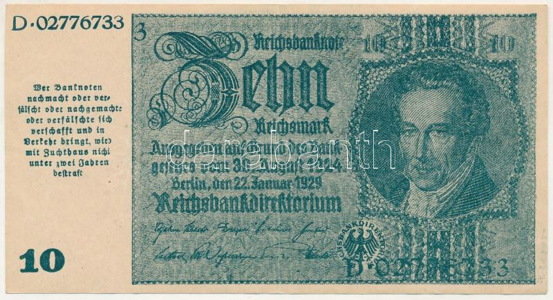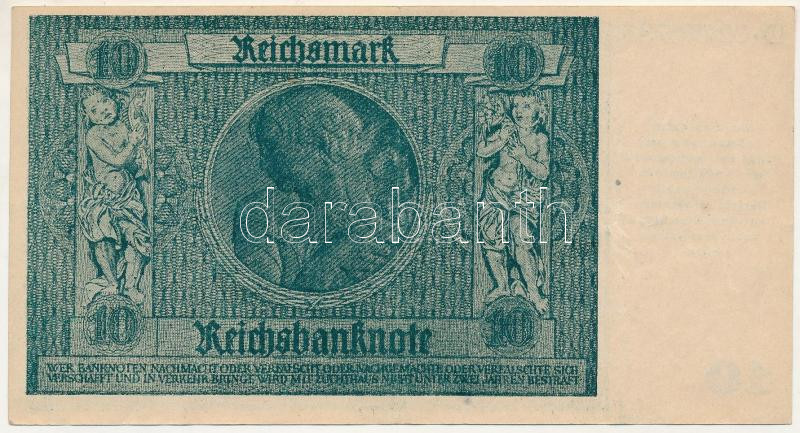 German Third Reich / Graz, Linz, Salzburg 1945. 10 Reichsmark "D 02776733" emergency issue on watermarked paper. All made with the same serial number C:F fine paper