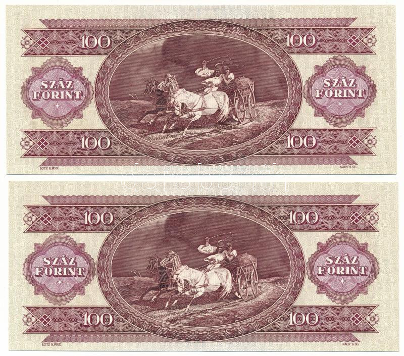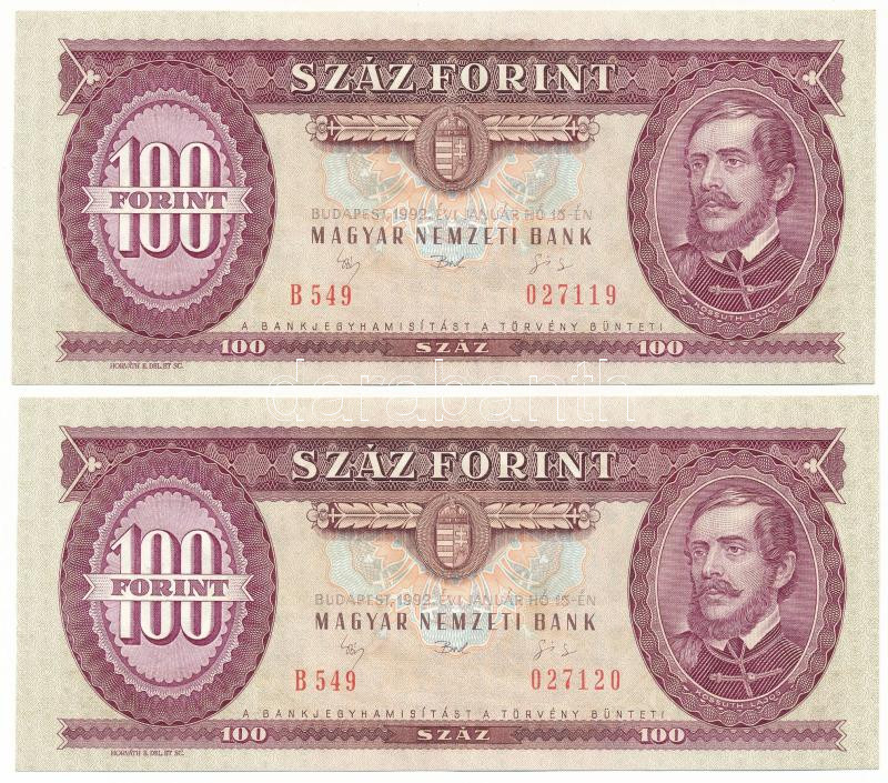 Leírás: 1992. 100Ft (2x) sorszámkövetők "B 549 027119 - B 549 027120" T:XF, hullámos papír, hosszirányú nyomódás