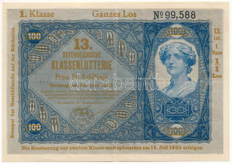 Ausztria 1925. "13. Österreichische Klassenlotterie (13. Osztrák Osztálysorsjáték)" első osztály egy sorsjegye T:F