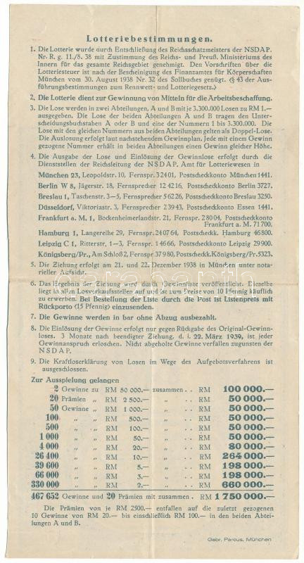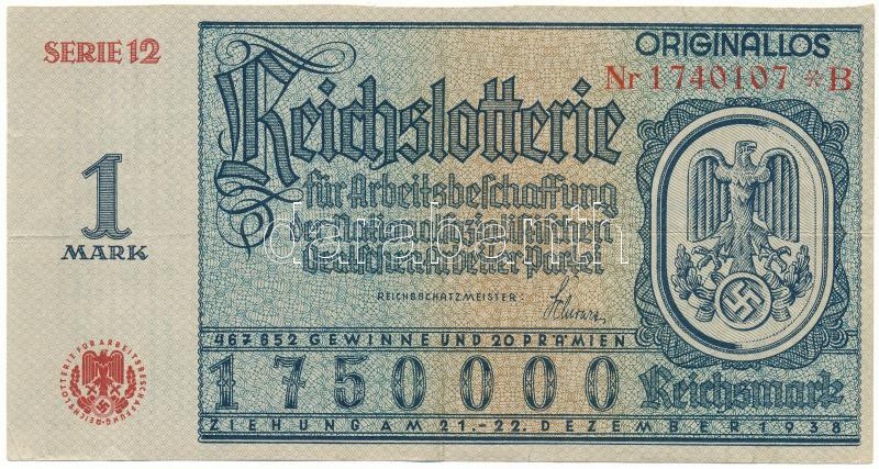 Német Harmadik Birodalom 1938. "Reichslotterie für Arbeitsbeschaffung ...