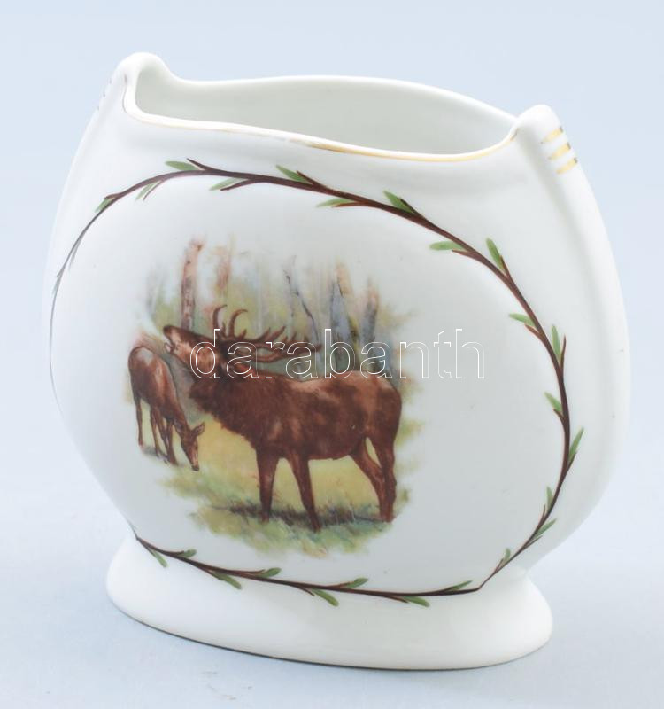 Leírás: Vadászmintás váza, jelzés nélkül, m: 11 cm