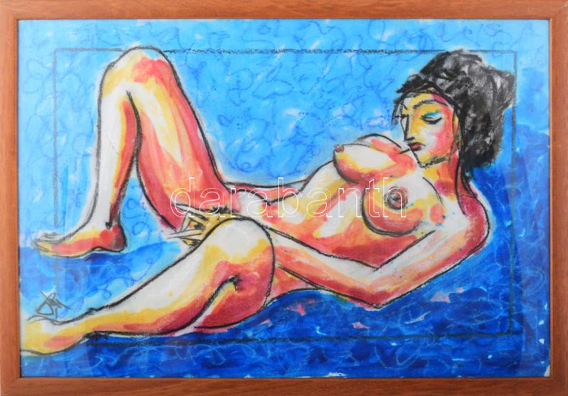 Leírás: Sörös Pál (1956-): Álmodozó női akt. Pasztell, vászon. Jelzett. Dekoratív, üvegezett fakeretben. 42x60 cm