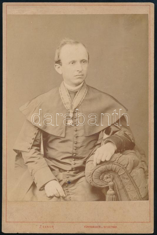 Leírás: Dr. Szeifricz István (1832-1917) választott püspök, keményhátú fotó Exner (Szigetvár, Pécs, Kanizsa) műterméből, 16,5×10,5 cm