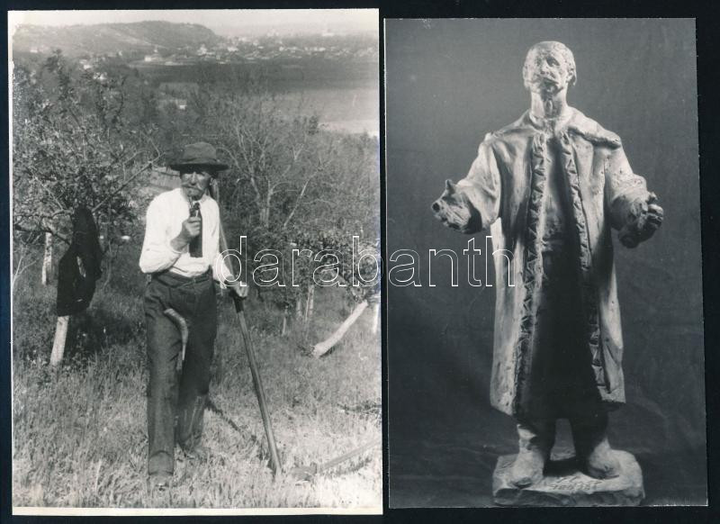Leírás: Szentgyörgyi István (1842-1931) színművész kolozsvári kertjében és szobra, 2 db fotó, 16,5×10 és 17×12 cm