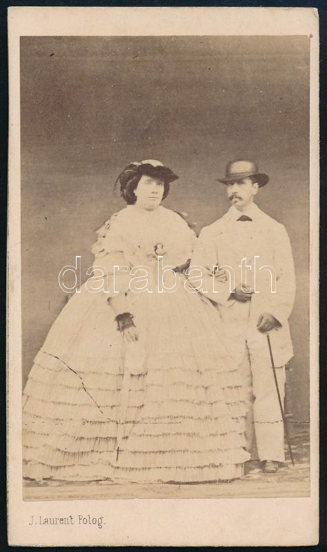 cca 1865 II. Izabella spanyol királynő és férje Francisco de Asís María Fernando de Borbón y Borbón-Dos Sicilia, keményhátú fotó Duran madridi műterméből, 10,5×6,5 cm