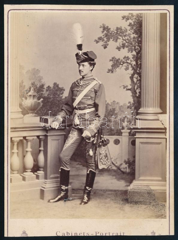 cca 1870-1875 Alexander Philip von Sayn-Wittgenstein-Sayn (1847-1940), a német Sayn-Wittgenstein-Sayn hercegi család tagjának egészalakos portréja, huszáregyenruhában. Kabinetfotó, alja vágott, 14,5x10,5 cm // cca 1870-1875 Alexander Philip von Sayn-Wittgenstein-Sayn (1847-1940), member of the German princely house of Sayn-Wittgenstein-Sayn, full-lenght portrait, wearing a hussar uniform. Cabinet card, cut on the bottom, 14.5x10.5 cm