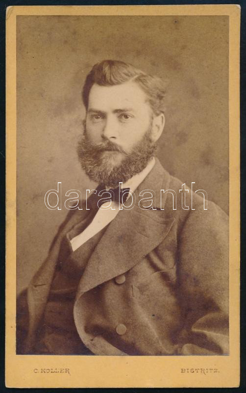 cca 1880 Férfiportré, keményhátú fotó Koller besztercei műterméből, 10... https://www.darabanth.com/hu/481-Gyorsarveres/481.0/Fotomuveszet/Foto~2000001/cca-1880-Ferfiportre-kemenyhatu-foto-Koller-besztercei-mutermebol-10-5x6-5-cm~II3284516