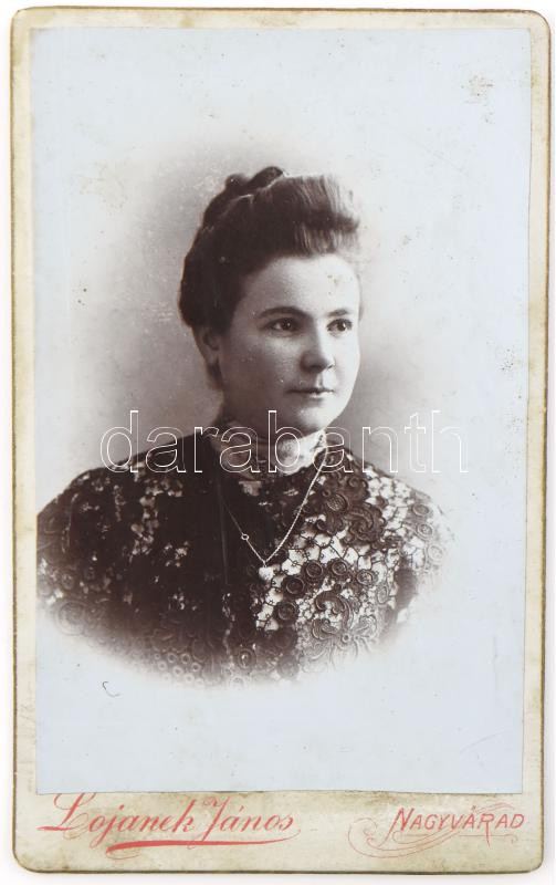 cca 1890, Nemesi hölgy portréja, keményhátú fotó, Lojanek János nagyvá... https://www.darabanth.com/hu/481-Gyorsarveres/481.0/Fotomuveszet/Foto~2000001/cca-1890-Nemesi-holgy-portreja-kemenyhatu-foto-Lojanek-Janos-nagyvaradi-mutermebol-hatoldalon~II3284239