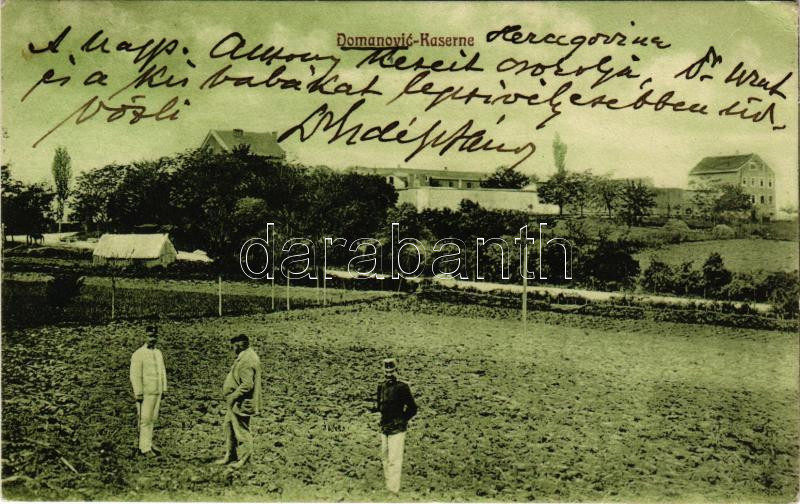 1914 Domanovici, Kaserne / K.u.k. military barracks (EK) + "K. UND K. ... https://www.darabanth.com/hu/481-Gyorsarveres/481.0/Kepeslapok/Bosznia-Hercegovina~1000037/1914-Domanovici-Kaserne-Kuk-military-barracks-EK-plus-K-UND-K-MILIT-POST-DOMANOVIC~II3283475