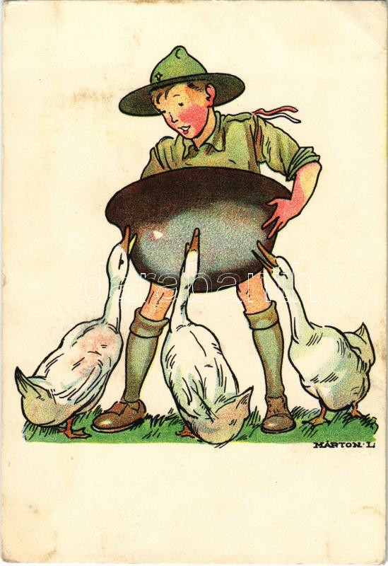 Leírás: Cserkész művészlap. Magyar Cserkészszövetség kiadása. Klösz Gy. és Fia / Hungarian boy scout art postcard s: Márton L. (EK)