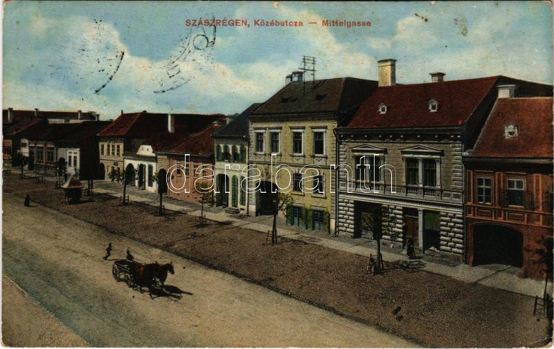 1916 Szászrégen, Sächsisch-Regen, Reghin; Közéb (Közép) utca. Rudolf B... https://www.darabanth.com/hu/481-Gyorsarveres/481.0/Kepeslapok/Erdely~1000010/1916-Szaszregen-Sachsisch-Regen-Reghin-Kozeb-Kozep-utca-Rudolf-Burghardt-kiadasa-~II3283901