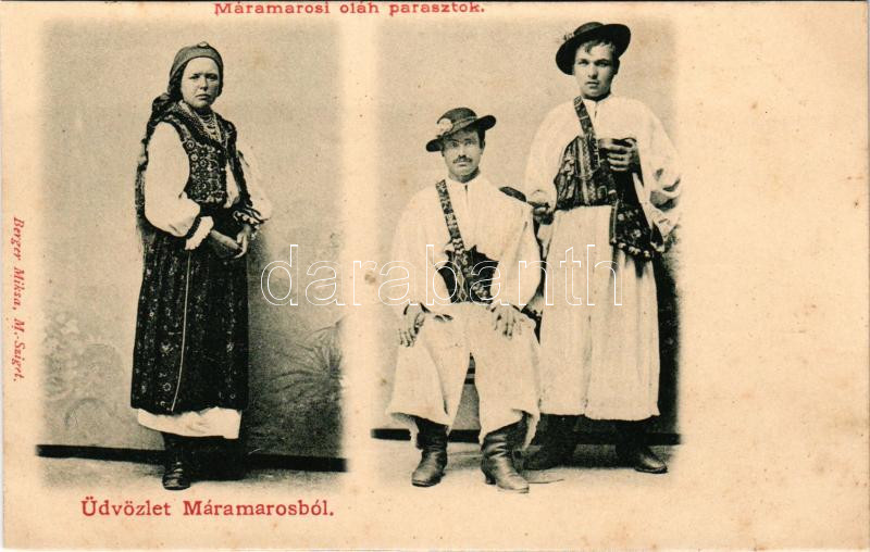 Máramaros, Maramures; Oláh parasztok. Berger Miksa kiadása / Romanian ... https://www.darabanth.com/hu/481-Gyorsarveres/481.0/Kepeslapok/Erdely~1000010/Maramaros-Maramures-Olah-parasztok-Berger-Miksa-kiadasa-Romanian-folklore~II3284267