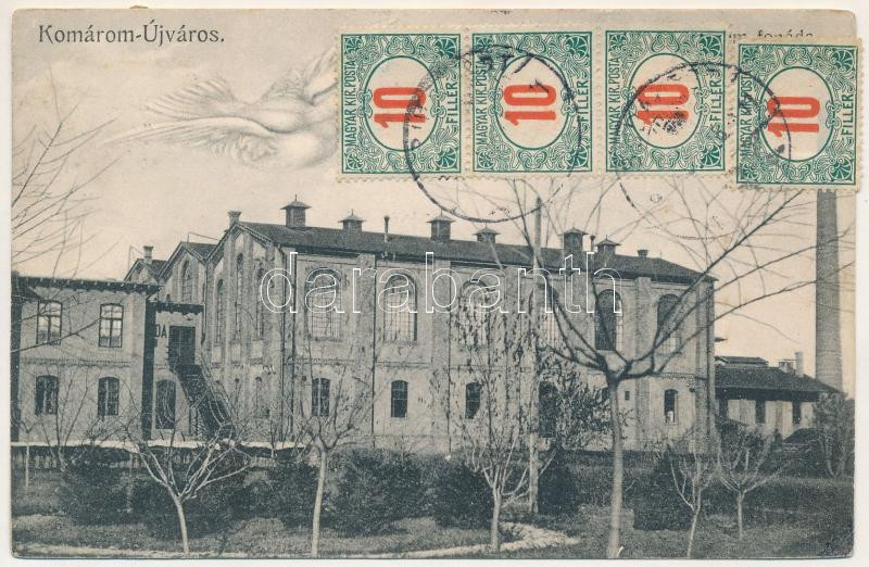 Leírás: 1921 Komárom, Komárno; Újvárosi Selyemgyár. Sipos F. kiadása / Seidenfabrik / silk spinning mill, silk factory