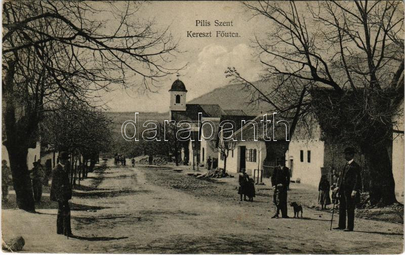 1911 Pilisszentkereszt, Fő utca, templom. Szemere kiadása (EK) https://www.darabanth.com/hu/481-Gyorsarveres/481.0/Kepeslapok/Magyarorszag~1000009/1911-Pilisszentkereszt-Fo-utca-templom-Szemere-kiadasa-EK~II3287409