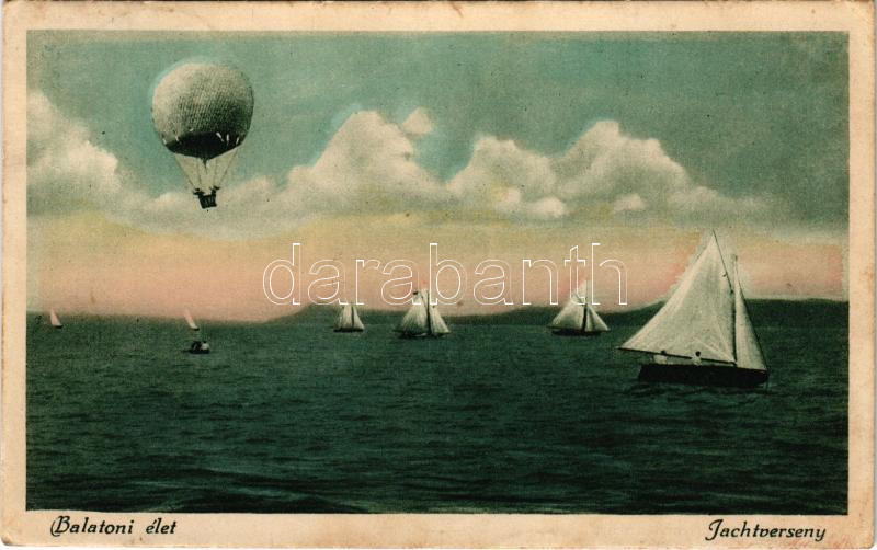 1926 Balatoni élet, Jachtverseny, hőlégballon (fl) https://www.darabanth.com/hu/481-Gyorsarveres/481.0/Kepeslapok/Magyarorszag~1000009/1926-Balatoni-elet-Jachtverseny-holegballon-fl~II3283789