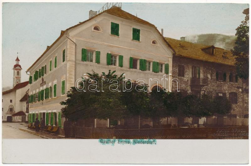 Leírás: Villabassa, Niederdorf (Südtirol); Gasthof Emma / hotel. Fritz Gratl hand-coloured photo