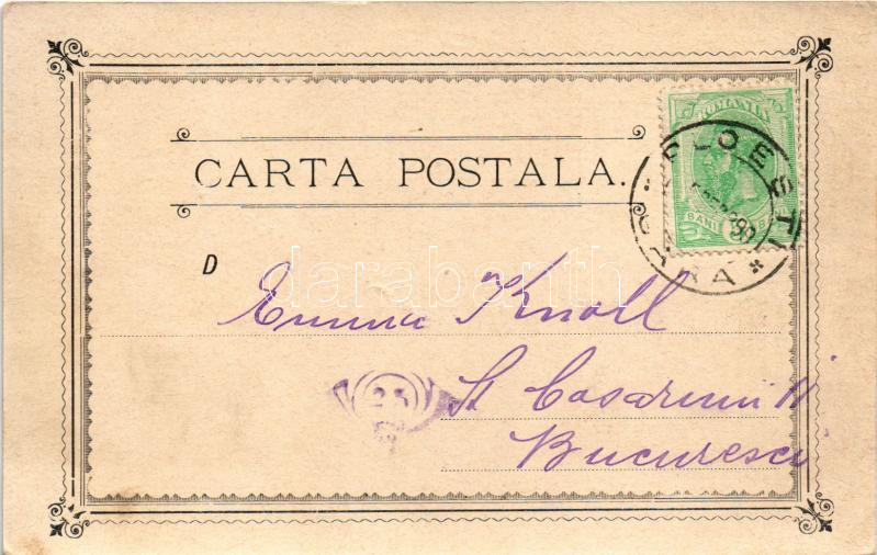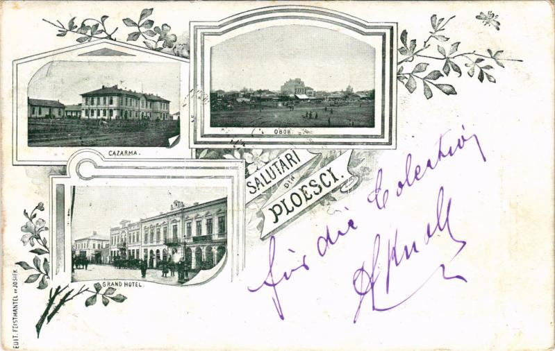 Leírás: 1899 (Vorläufer) Ploiesti, Ploesti, Ploesci; Cazarma, Obor, Grand Hotel / military barracks, training field. Art Nouveau, floral (Rb)