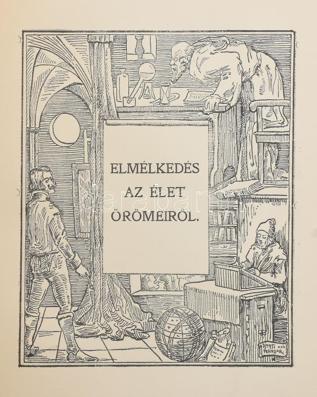 Leírás: Hock János: Vigasztalások könyve. Elmélkedések és hangulatok. Bp., 1903., Athenaeum,4+227 p. Harmadik kiadás. Honti Nándor szecessziós fekete-fehér rajzaival illusztrált. Kiadói illusztrált egészvászon-kötés, kissé kopott borítóval, laza fűzéssel.