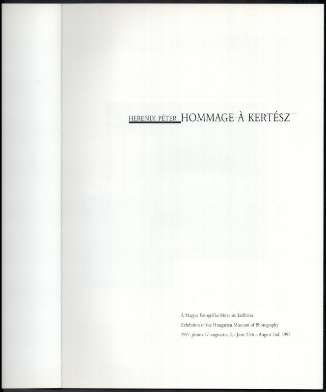 Herendi Péter: Hommage á Kertész. A Magyar Fotográfiai Múzeum Kiállítá... https://www.darabanth.com/hu/481-Gyorsarveres/481.0/Konyvek/Konyvek-Epiteszet-muveszet~2000023/Herendi-Peter-Hommage-a-Kertesz-A-Magyar-Fotografiai-Muzeum-Kiallitasa-1997-Kiadoi-papirkotes-~II3290256