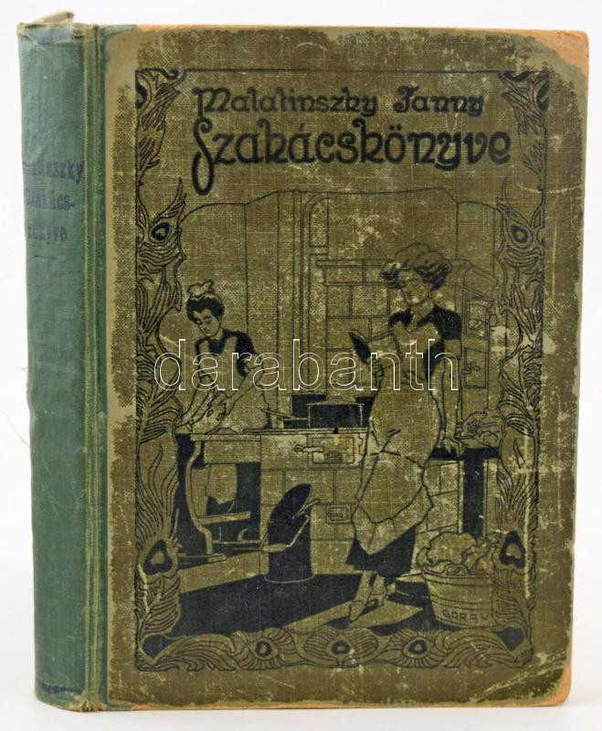 Malatinszky Fanny szakácskönyve. Sajtó alá rendezte az "Orsz. NÅ‘képzÅ‘ Egyesület." Bp.,[1912],Légrády, VI+256+1 p. +15 (szÃnes táblák) + 5 (fekete-fehér táblák) t. ElsÅ‘ kiadás. Kiadói félvászon-kötés, kopott borÃtóval, kissé sérült gerinccel, néhány foltos lappal, néhány lapon bejelöléssel, egy tábla hiánnyal.