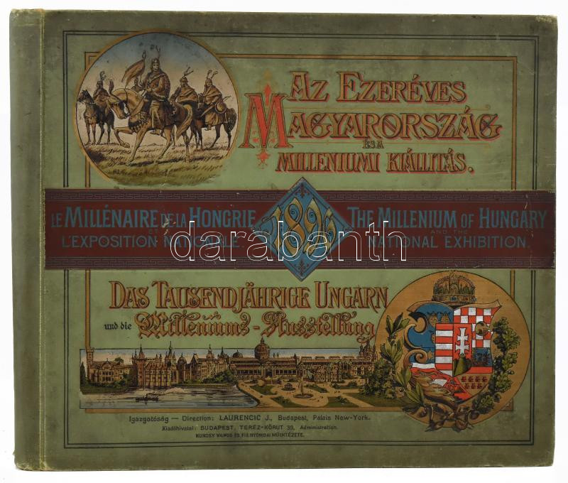 Az ezeréves Magyarország és a Milléniumi Kiállítás. Magyarország a Millennium idejében. Magyarország legszebb tájainak, városainak és műkincseinek valamint a kiállítás nevezetességeinek fényképgyűjteménye. Szerk.: Piványi, Tímár, Palóczy, Fouquau, Vidéky. Bp., 1896, Kunosy Vilmos és Fia Műintézete. 210 p. Kiadói aranyozott, festett egészvászon-kötés, gerincen apró sérüléssel, kissé foltos borítóval, néhány kevés lap kijár (3.-10. o.).
