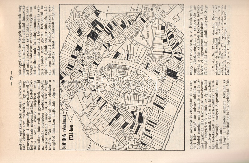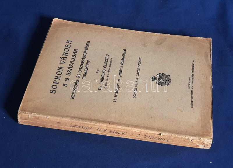 Thirring Gusztáv (1861-1941) földrajztudós, statisztikus, demográfus, természetjáró, turisztikai és soproni helytörténeti író. Szülővárosa gazdaság- és helytörténetét több munkában dolgozta fel, oldalszámozáson belüli térképvázlatokkal illusztrált demográfiai és gazdasági kötete totális körképet az a XVIII. századi Sopron társadalmi viszonyairól.