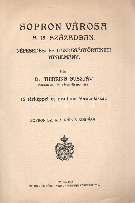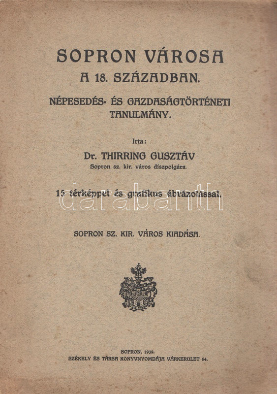 Sopron városa a 18. században. Népesedés- és gazdaságtörténeti tanulmány. 15 térképpel és grafikus ábrázolással.