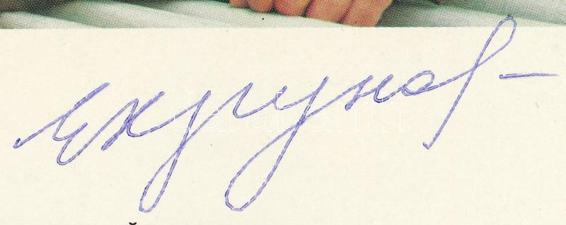 Leírás: Jevgenyij Hrunov (1933-2000) szovjet űrhajós aláírása képen / Signature of Evgeniy Hrunov (1933-2000) Soviet astronaut on card 15x21 cm