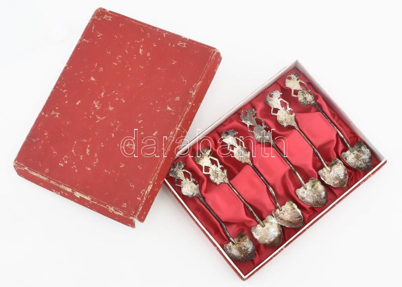 Leírás: Ezüstözött díszkanál szett, dobozában.