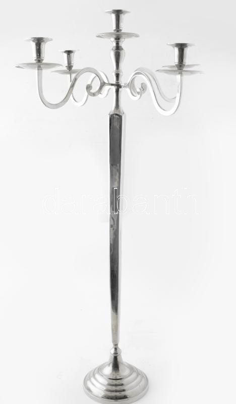 Leírás: Hatalmas ötágú álló gyertyatartó, fém, jó állapotban, m: 98 cm