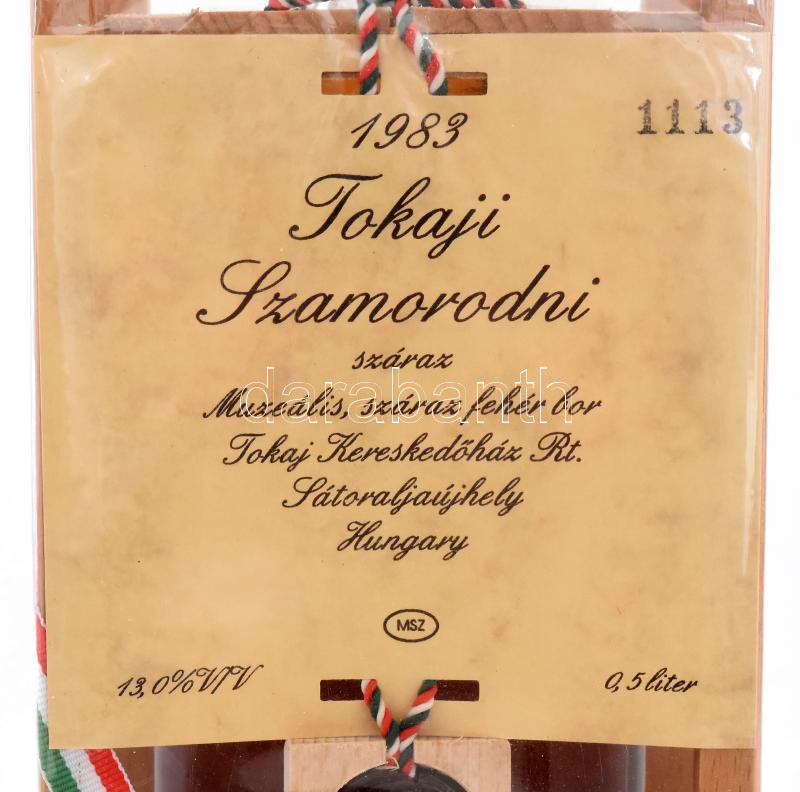 1983 Tokaji Szamorodni száraz, Tokaji Kereskedőház Rt. Sátoraljaújhely... https://www.darabanth.com/hu/481-Gyorsarveres/481.0/Mutargy-papirregiseg-egyeb/Muzealis-borok-italok~1500017/1983-Tokaji-Szamorodni-szaraz-Tokaji-Kereskedohaz-Rt-Satoraljaujhely-0-5-l-sorszamozott-~II3291330