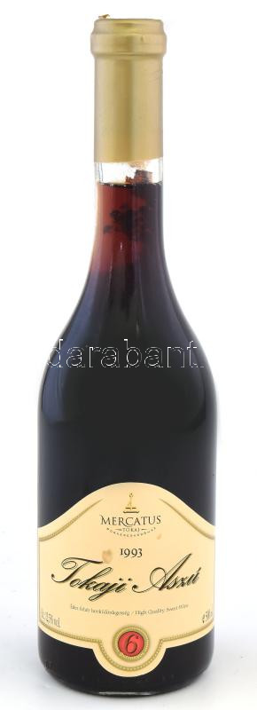 1993 Mercatus tokaji aszú 6 puttonyos, bontatlan palack 0,5l https://www.darabanth.com/hu/481-Gyorsarveres/481.0/Mutargy-papirregiseg-egyeb/Muzealis-borok-italok~1500017/1993-Mercatus-tokaji-aszu-6-puttonyos-bontatlan-palack-0-5l~II3291299