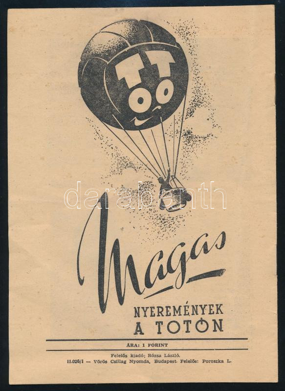 1955 Bp. Honvéd - FC Partizán (Belgrád) nemzetközi labdarúgó mérkőzés ... https://www.darabanth.com/hu/481-Gyorsarveres/481.0/Mutargy-papirregiseg-egyeb/Nyomtatvanyok~2000013/1955-Bp-Honved-FC-Partizan-Belgrad-nemzetkozi-labdarugo-merkozes-fuzete-hatoldalan-TOTO~II3285212