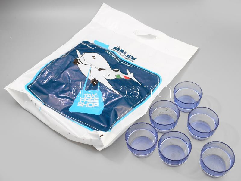 Leírás: Malév 6 darab pohár, Malév műanyag táskával.