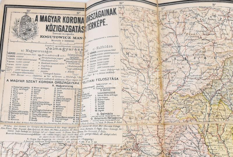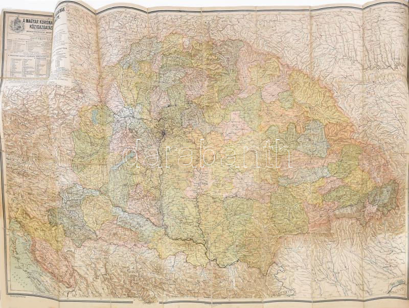 Magyarország közigazgatási térképe (A magyar korona országainak közigazgatási térképe) 1913. Magyar Földrajzi Intézet. 112x80 cm Vászonra kasírozva Borító kissé foltos