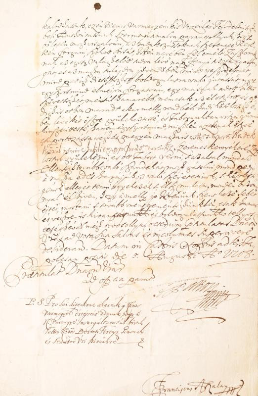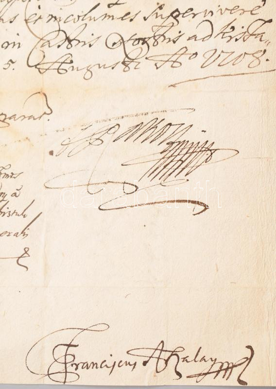 II. Rákóczi Ferenc és titkára Aszalay Ferenc (1674-1729). autográf aláírásával, Két, magyar nyelven beírt oldalon.