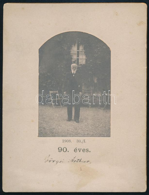 1908 (Görgey) Görgei Artúr (1818-1916) 1848-49-es honvédtábornok, hadügyminiszter autográf aláírása 90 éves korában készített fotóján a Százados úti művésztelepen 10x13 cm
