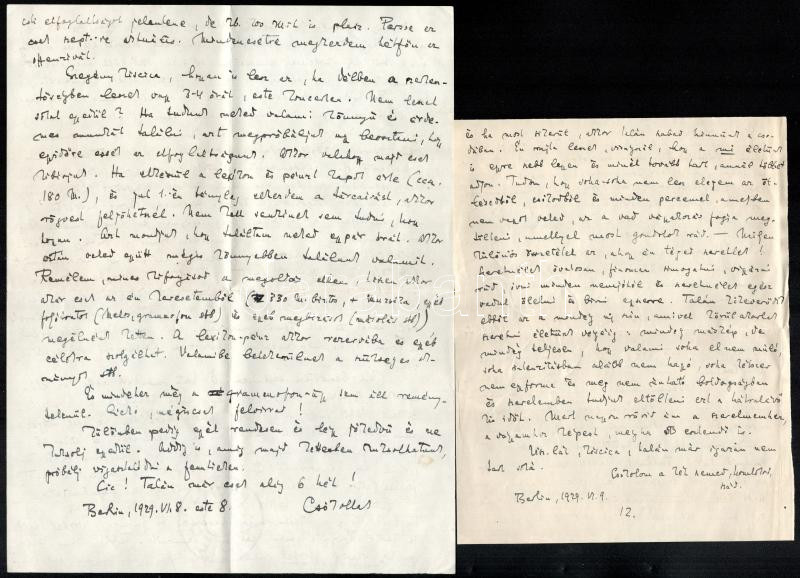 1929 Gombosi Ottó (1902-1955) zenetörténész, zenekritikus autográf sorai össz. 5 db levélben Seiber Mária zongoraművész, zongoratanárhoz, Keresztury Dezső későbbi feleségéhez Németországból, részben érdekes zenetörténeti adalékokkal, aukciókról, berlini életről, egy levélhez mellékelve egy újságkivágás Gombosi a magyarországi Volksblattban megjelent német ny. cikkével. Levelek eredeti borítékban.