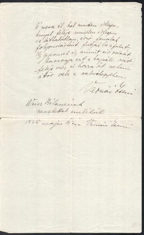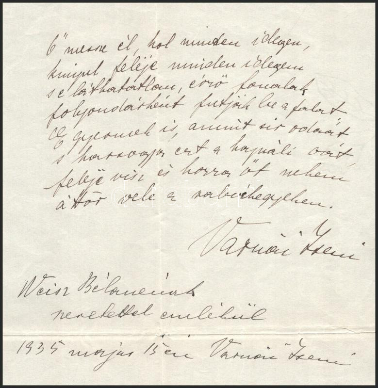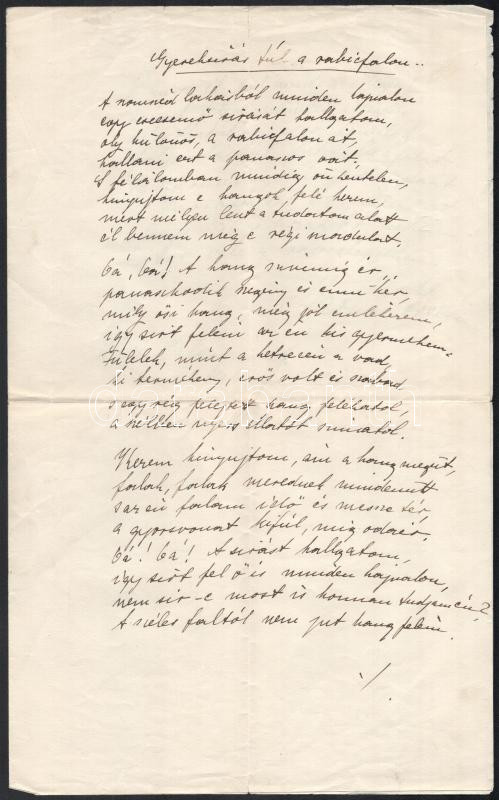 1935 Várnai Zseni (Weisz Eugénia) (1890-1981) József Attila-díjas költő Gyereksírás a rabicfalon túl c. versének autográf és dedikált kézirata. Két beírt oldal.