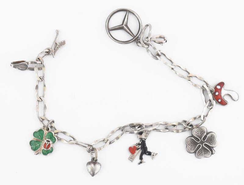 Leírás: Ezüst (Ag) karlánc, medálokkal, zománcozott medálokkal, jelzett, 9 g