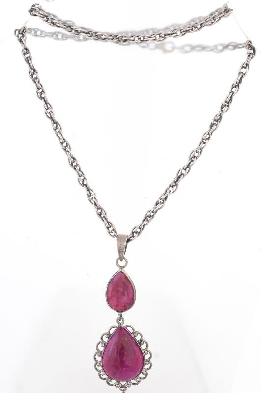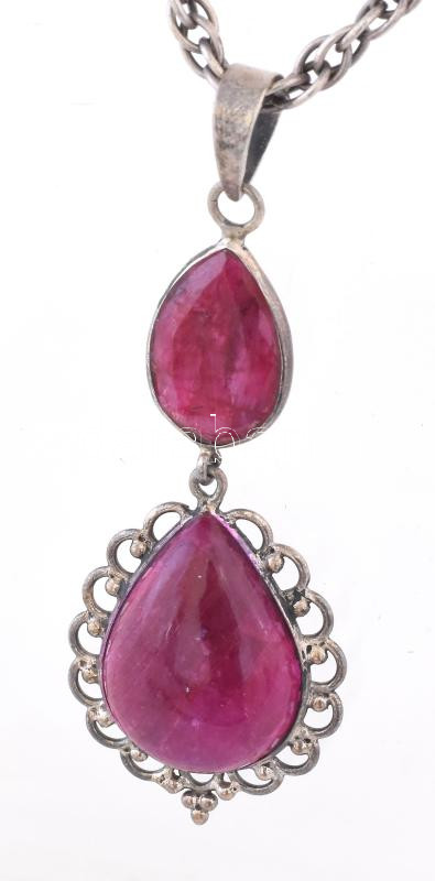 Leírás: Ezüst (Ag) nyakék, rubin berakással, jelzett, bruttó 24g, díszdobozban