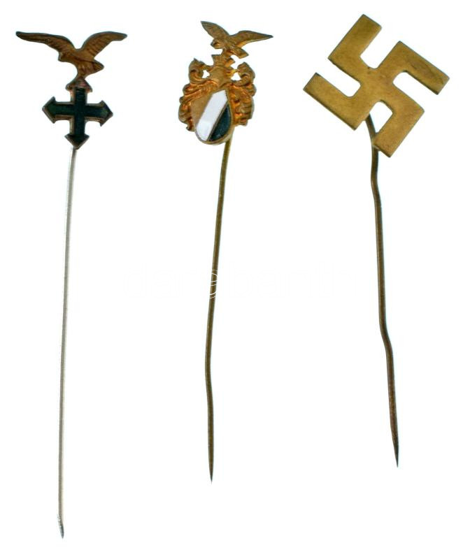 ~1930. Horogkeresztes bronz kitűző (17mm) + Nyilaskeresztes zománcozott bronz kitűző (14x13mm) + "Turul Szövetség" bronz kitűző (16x13mm) T:AU kis zománchiba